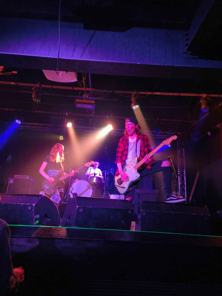 After the set we took another trip to the bar whilst waiting for the final act of the night, Slackrr. They are a trio from Southampton with the lead singer (Scotty) on guitar, a backing vocalist (Cait) on the bass and a drummer (Louis).