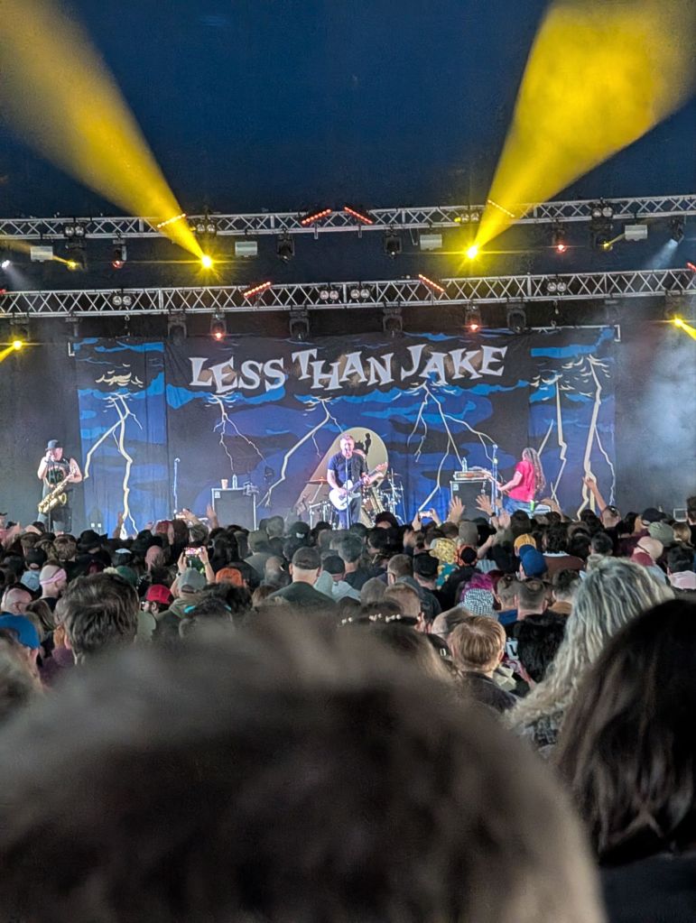 The rain came down again for the second time so we headed to the Monster Stage tent and caught the end of Less Than Jake who was really fun especially with a saxophone and trumpet player.